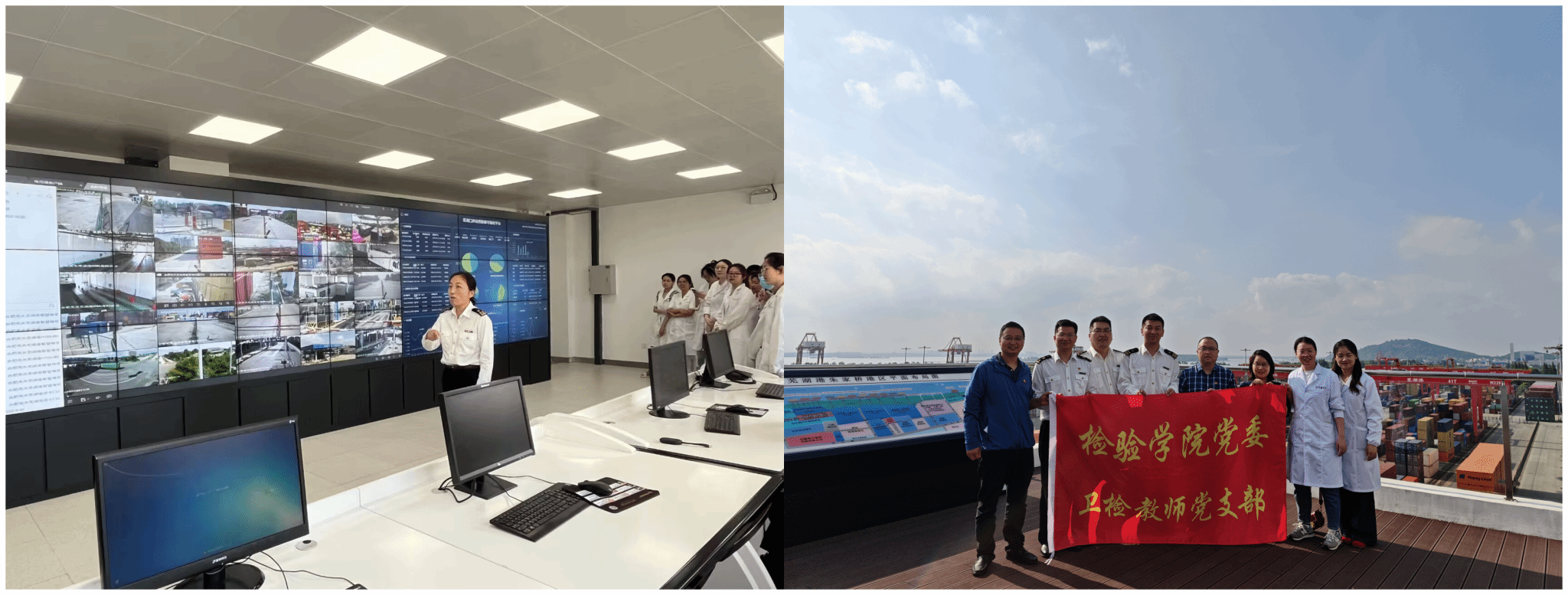 参观学习实践,拓宽视野思路。为进一步加深对彼此业务领域的了解,芜湖海关组织开展了参观学习活动。卫检教师党支部的党员们走进芜湖海关监控科,实地参观了海关的监控设施、业务流程以及相关工作场景。海关工作人员详细介绍了海关监控科在进出口货物监管、打击走私、维护国家经济安全等方面的工作职责和重要成果,让教师们对海关工作有了更直观的认识和更深刻的理解,为今后在业务合作、资源共享等方面提供了更多的思路和可能性。