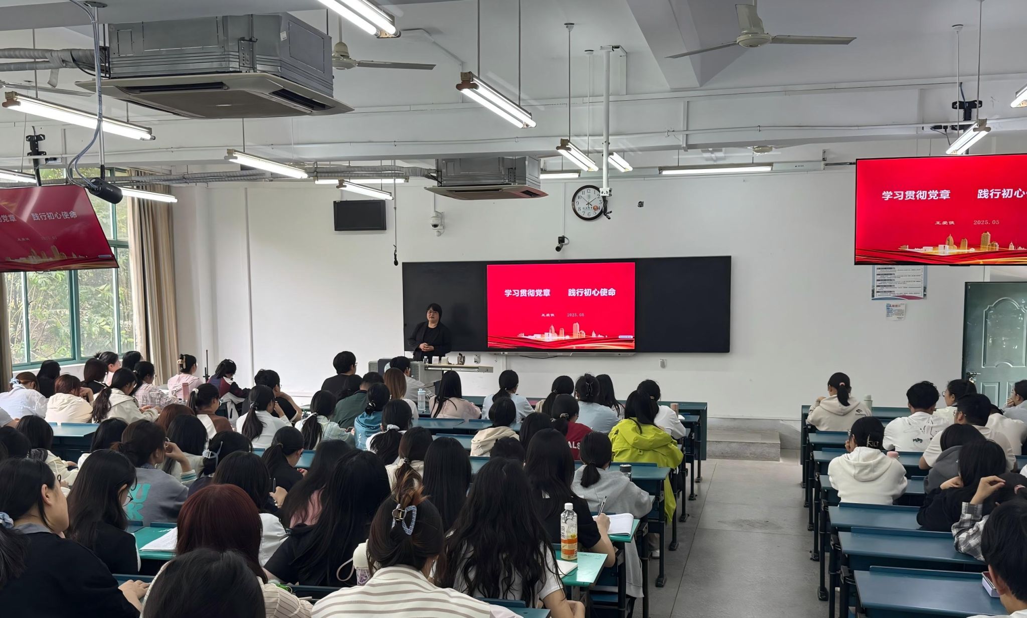 学习贯彻党章,践行初心使命。5月10日,学院党委书记王爱侠为入党积极分子讲授“学习贯彻党章 践行初心使命”专题党课。她从党章的历史沿革、党的性质宗旨、指导思想、初心使命等方面展开,结合焦裕禄、吴孟超等榜样事迹,引导同学们端正入党动机、理解党章内涵、坚定理想信念。王爱侠还为同学们详细介绍了入党条件与程序,鼓励他们以实际行动争取早日加入中国共产党。
