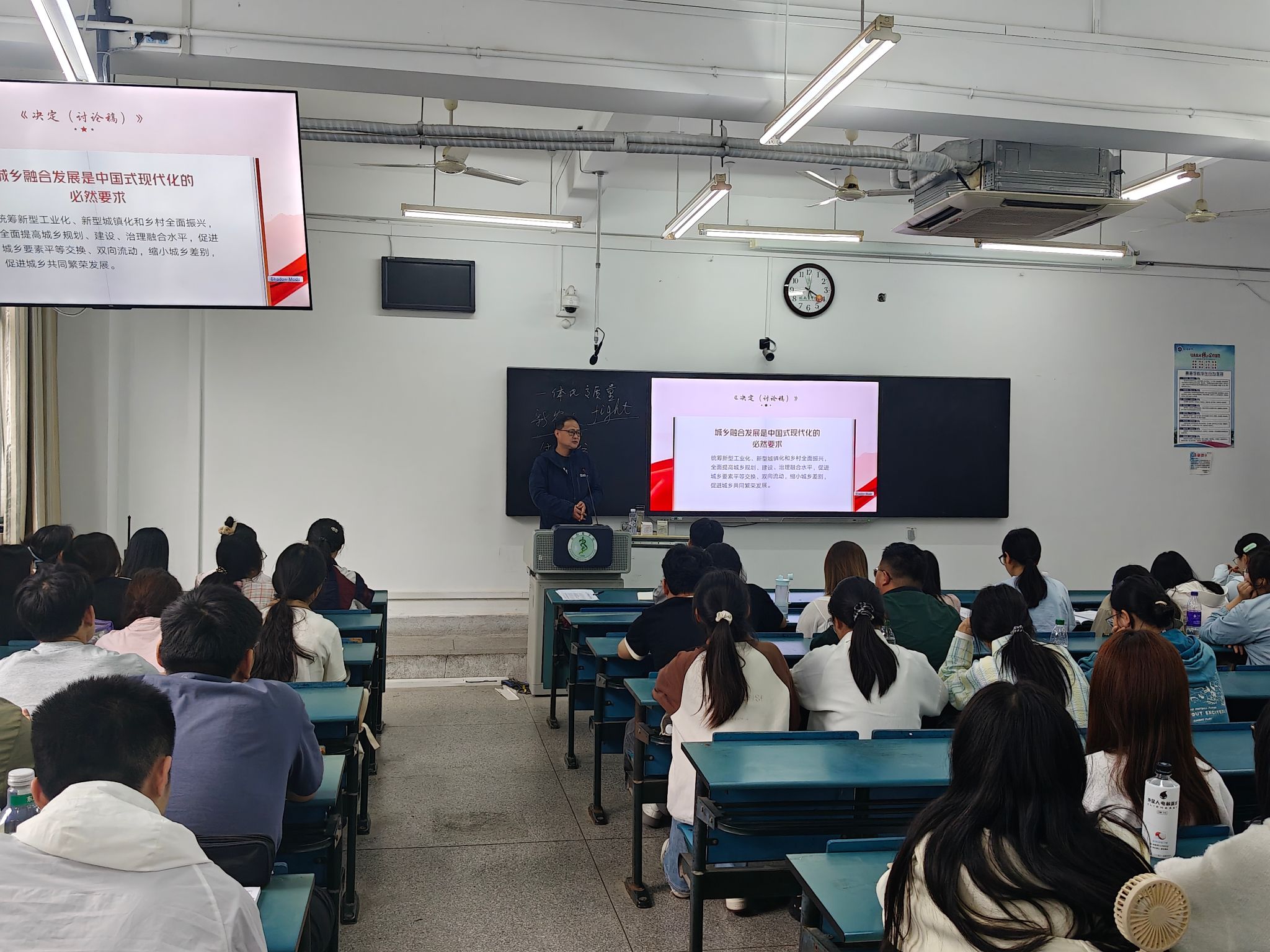 学习新思想,青春建新功。学院院长赵劲松聚焦党的二十届三中全会,围绕学习贯彻习近平总书记重要讲话精神作党课。他阐释了全面深化改革与推进中国式现代化的紧密联系,详细解读了全会聚焦的各项任务,希望同学们继承和发扬党的优良传统与作风,努力学习、勇于创新,将全会精神融入日常学习生活,以实际行动为实现中国式现代化添砖加瓦。
