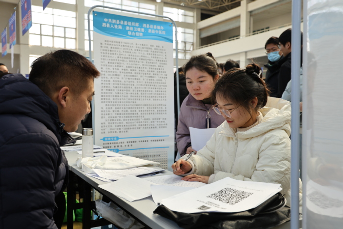 招聘会当天,有500余名毕业生与用人单位达成就业意向,100余人现场与用人单位进行签约。