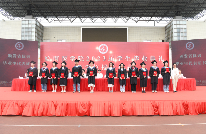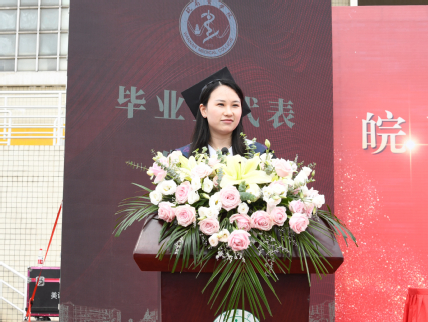 安徽省优秀毕业生、麻醉学院刘梦雨作为毕业生代表发言,她表达了对母校的诚挚谢意和惜别之情,表示将带着在皖医塑造的优良品格、锻炼出的过硬本领、收获到的宝贵学识,踏上新的人生征程,秉承皖医校训,发扬皖医精神,积极向上,志存高远,奉献社会,用拼搏与超越赢得灿烂与辉煌。