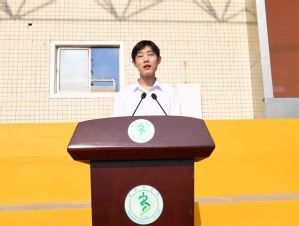 教师代表、人文与管理学院黄龙老师,老生代表、研究生学院吴郭鑫同学,新生代表、医学信息学院汪星宇同学,留学生代表心爱同学,军训教官代表王天祥同志分别作了发言。
