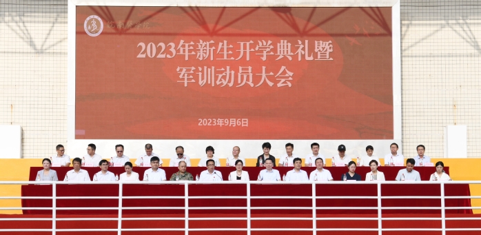 择医为志不负韶华,医路启航绽放青春。2023年9月5日,我校在滨江校区田径场隆重举行2023级新生开学典礼暨军训动员大会。在校校领导夏劲松、姚应水、文育锋、王保中,芜湖市镜湖区人民武装部政委姚林江出席大会。大会由副院长文育锋主持。