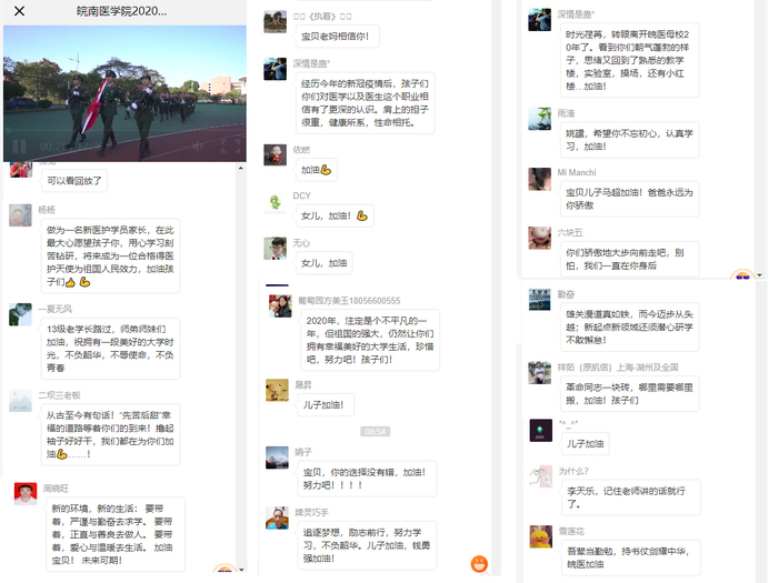 在此次开学典礼暨军训动员大会中,学校还精心制作播放了“众志成城  同心抗疫”宣传片,首次采用“现场+线上直播”的方式对典礼现场进行直播,场外人员可通过网络链接同步进行观看。至活动结束时,直播共计播放42657人次,收到来自新生家长、校友等祝福1000余条,获得了一致好评。