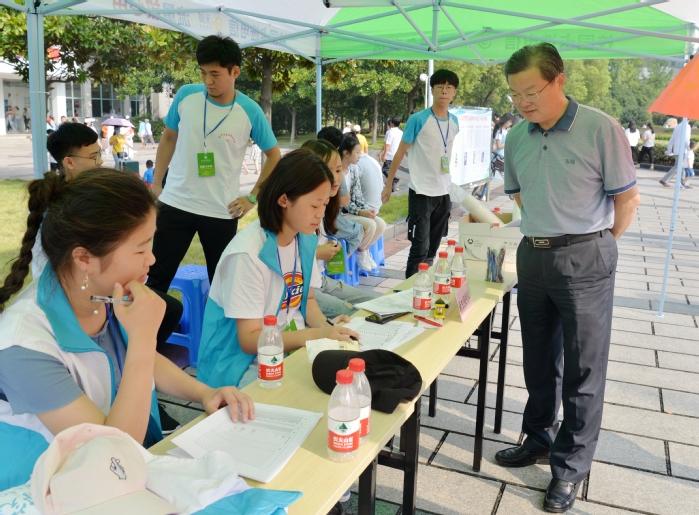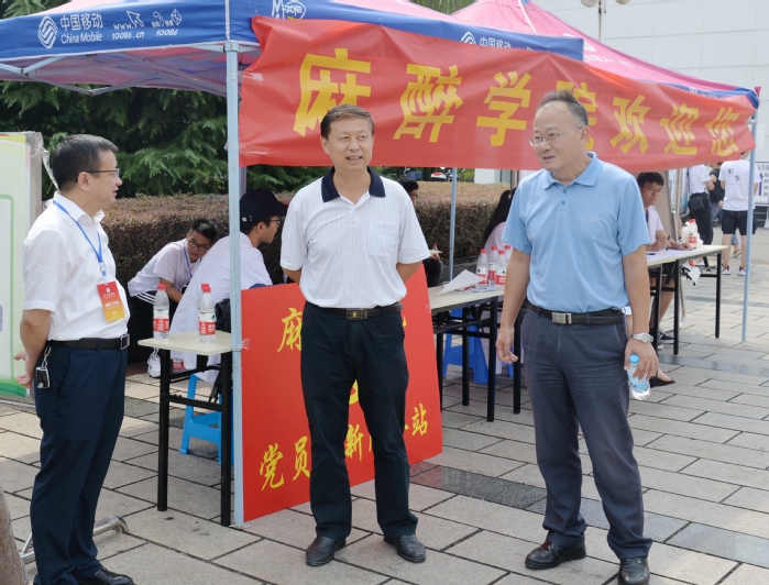 为保证迎新工作有序开展,学校相关部门及各学院负责人、辅导员和工作人员当天早早来到迎新现场,准备新生报到各项工作。校党委书记章尧,院长廖圣宝,党委副书记李刚,纪委书记刘人人,副院长吴金月、郑兰荣深入迎新现场,亲切慰问工作人员、学生以及家长,详细了解迎新工作安排和新生报到情况,叮嘱大家要为新生同学及家长提供热情、温馨、周到的服务,彰显皖医魅力形象。