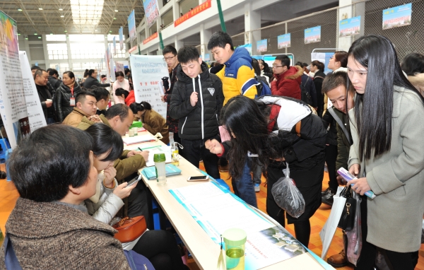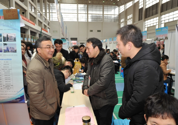 招聘现场气氛热烈,场面火爆,秩序井然。用人单位通过展示信息展板、播放宣传片和发放宣传册等多种方式向同学们详细介绍单位概括、发展战略、福利待遇和人才需求等基本情况,并对前来咨询同学的提问作了一一解答,详细介绍应聘流程。从参会单位来看,本次招聘会呈现出层次高、领域宽、岗位需求广泛、质量明显提升等特点。求职毕业生手持精心准备的自荐书和简历,满脸自信地穿梭于人流之中,积极与招聘人员交流,主动询问了解用人单位的情况及用人需求,积极寻求适合自己的就业岗位。还有很多低年级同学自发到现场感受就业氛围,提前“试水”就业,提前感受招聘气氛,以便掌握招聘单位用人需求,尽早规划自己的职业生涯,为将来就业做好各方面的准备。不少学生反映,此次就业市场是一堂生动的就业指导课,层次高、质量好、数量大的社会需求使自己对未来充满信心,重素质、重能力、重技能的用人标准使自己明确了奋斗目标,增强了学习动力。志愿者们精神抖擞,一直忙碌在招聘会现场。为招聘单位和前来求职的同学提供热情周到地服务。各学院负责人和毕业班辅导员心系就业工作,积极与用人单位交流、沟通,介绍学院的专业特色,积极向用人单位推介毕业生。洽谈会当天,毕业生与用人单位达成意向的有1108人,56人现场就与用人单位签约。