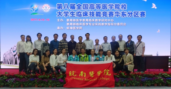 4月14-16日,第八届全国高等医学院校大学生临床技能竞赛(华东分区赛)在蚌埠市举行。来自华东地区的28所高等院校的29支代表队、116名五年制、七年制和八年制临床医学专业选手汇聚,同场竞技。我校代表队在院长章尧、副院长廖圣宝的带领下参加比赛喜获团体特等奖,这是我校第二次荣获全国高等医学院校大学生临床技能竞赛华东赛团体特等奖,第6次晋级全国总决赛。