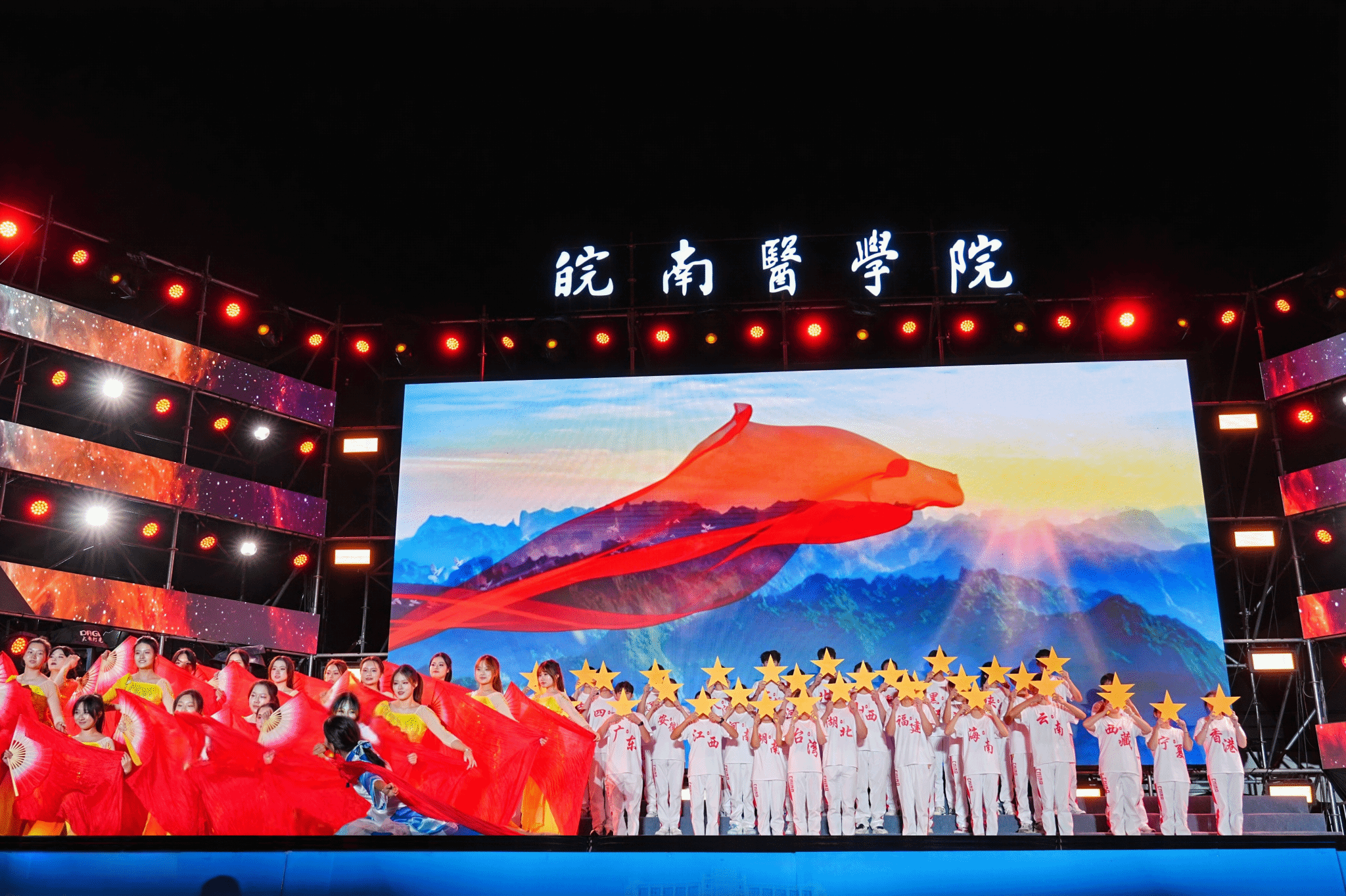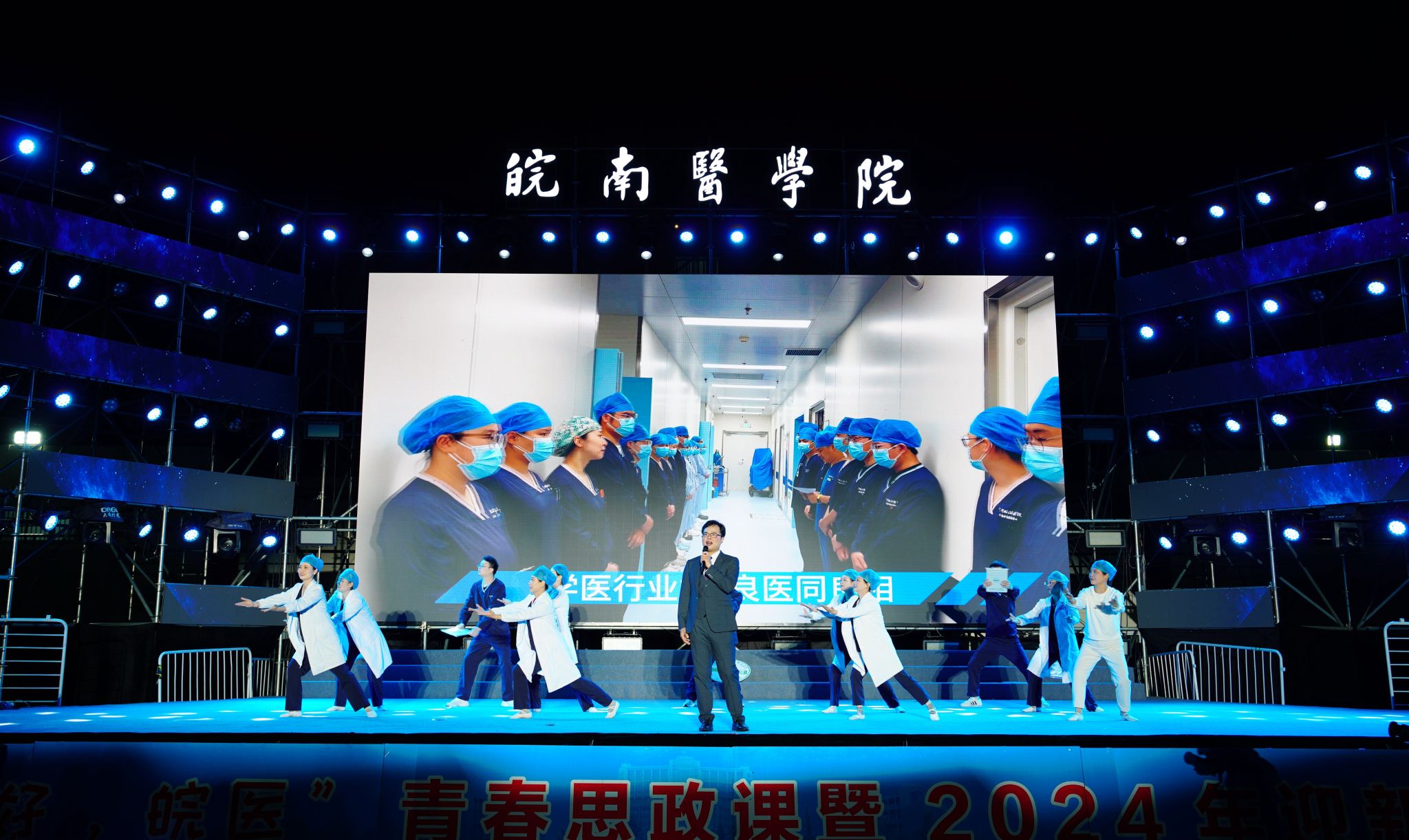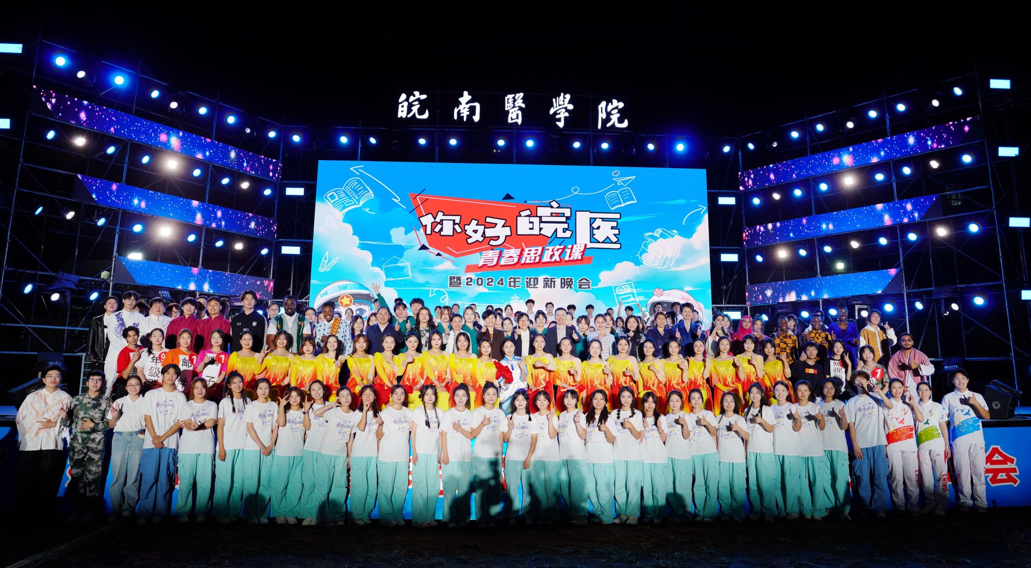 致敬理想荣光,迎接梦想起航。作为学校十大重点文化品牌活动之一,“你好,皖医”青春思政课暨迎新晚会聚焦“青春启航”工程,围绕传统文化、红色文化、皖医文化,以“艺术+思政”的形式引导2024级新生涵养家国情怀、感悟使命担当、确立奋斗目标、激发成长动力,在喜闻乐见的校园文化活动中汲取文化滋养和精神力量,努力成长为充满理想、正直善良,敬佑生命、救死扶伤,不负韶华、逐梦远方的新一代皖医人,以“坚守初心、拼搏奋进”的意气风发和“心中有梦、眼中有光”的自信昂扬,在学校高质量发展的道路上奋力跑出青春最好的样子。(都芳/文  李晓晓、郭平石/摄)