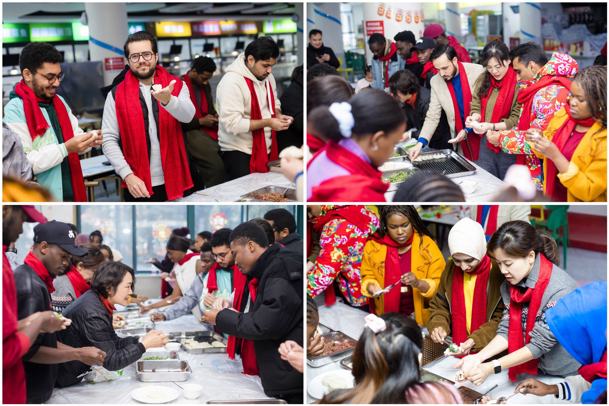 包饺子活动中,大家围在桌前,迫不及待地尝试动手制作水饺,现场欢声笑语不断。在大家的共同努力下,各式各样的水饺摆满了餐桌。当热气腾腾的水饺端上桌,大家品尝着自己的劳动成果,脸上洋溢着幸福的笑容。浓浓的年味与情谊在舌尖蔓延开来,让国际学生真切感受到了中国春节阖家团圆的温暖氛围。