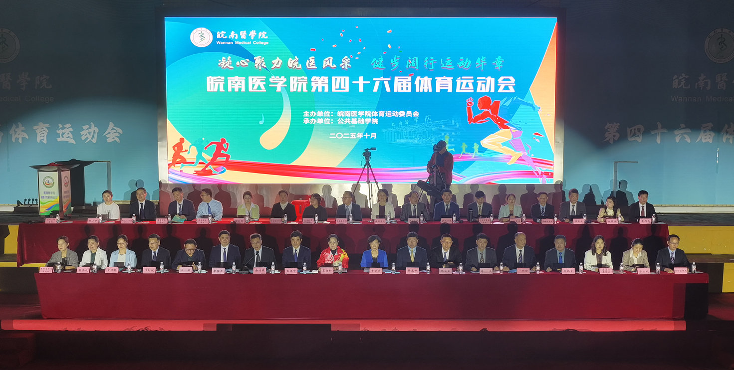 青春似火逐秋日,奋勇拼搏正当时。10月16日晚上7时整,学校第四十六届体育运动会在运动场隆重开幕。校领导夏劲松、贾贤燕、王保中、韩永升、余结根出席开幕式,北京天坛医院安徽医院、附属太和医院、附属皖南康复医院、附属北京安定医院芜湖医院等医院负责人,运动会组委会成员,裁判员,运动员,学生代表参加开幕式。开幕式由党委常委、副院长余结根主持。