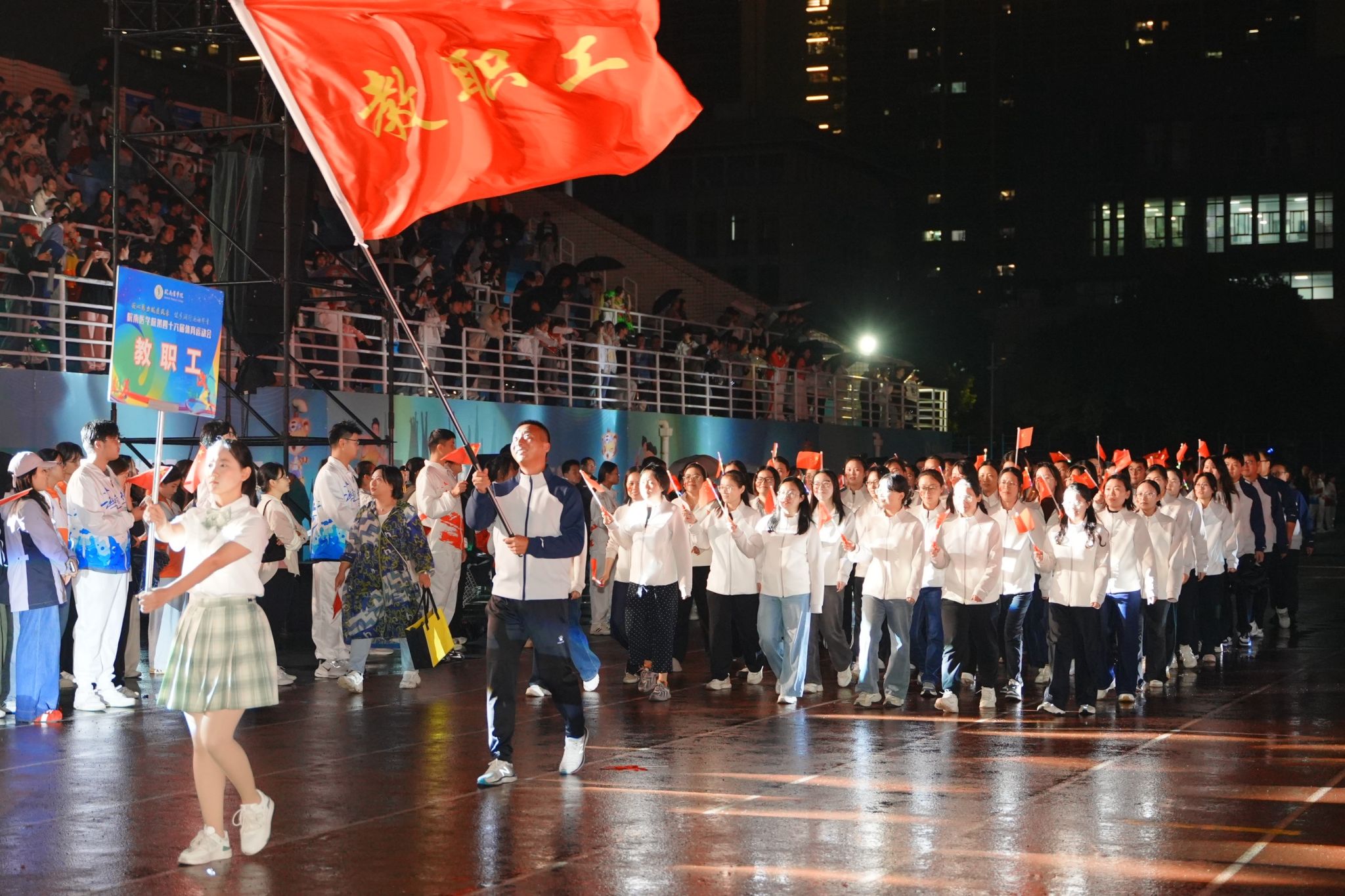 党委副书记贾贤燕致开幕词。她代表学校向为赛事筹备付出心血的全体师生医护员工表示诚挚感谢,向参与开幕式演出的师生致以亲切问候,向即将驰骋赛场的运动员们致以美好祝愿。贾贤燕指出,学校树牢融合育人理念,深化教育教学改革,深入推进以体育智、以体育心、以体育人,学校体育工作蓬勃发展,竞技体育成绩优异。希望同学们充分展现竞技风采,读懂体育背后蕴含的时代意义与人生价值,用勇气挑战不可能,用执着应对不确定,用豁达接纳不完美,望远山而前行,知不足而奋进,努力书写无愧青春、无愧时代的绚丽诗篇。