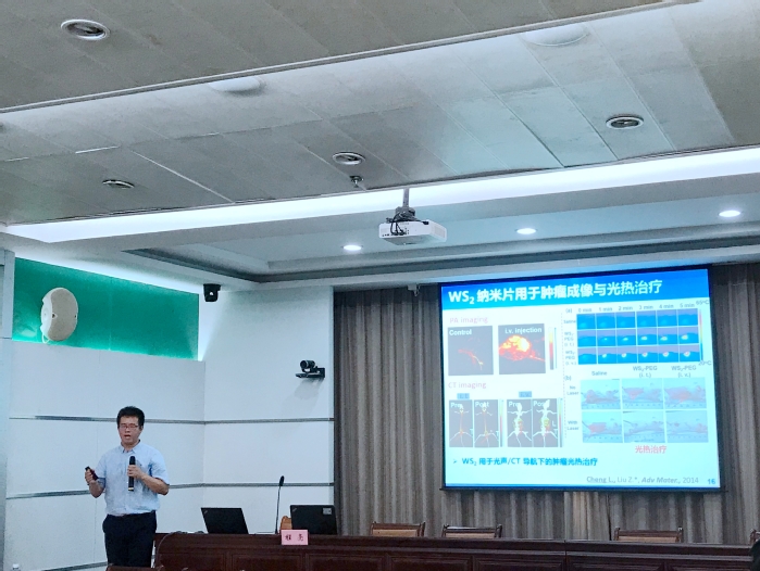 博士沙龙第一阶段,由苏州大学程亮教授进行学术报告交流。程亮结合自身研究,以“功能纳米材料在肿瘤诊疗中的应用探索”为主题,基于功能纳米材料特殊的光学、磁学、声学、催化等理化性质,以影像导航下的新型肿瘤光学治疗、声动力治疗及肿瘤联合治疗为重点,从肿瘤治疗研究、生物学效应以及其他疾病治疗三个方面,介绍了功能纳米材料的临床应用。同时,程亮结合自己的科研经历和研究领域,重点就如何推动学科交叉与融合,与大家分享了科研经验与体会。