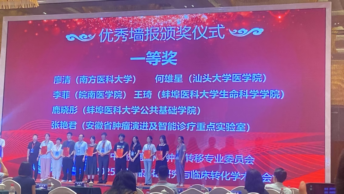 近日,由蚌埠医科大学和中国抗癌协会肿瘤转移专业委员会联合主办的2025年肿瘤基础研究与临床转化学术大会在蚌埠市召开,大会吸引了来自全国肿瘤研究领域的众多专家学者、临床医生及科研人员齐聚一堂,交流探讨学术最前沿知识。我校基础医学院相关教研室师生一行7人参加大会。