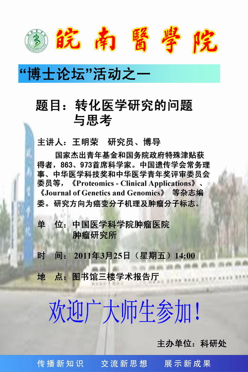 博士论坛活动之一――“转化医学研究的问题与思考”