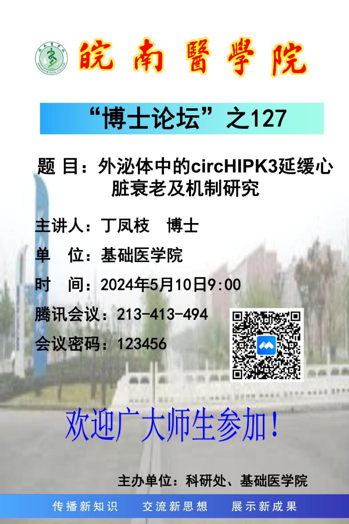 博士论坛之127:外泌体中的circHIPK3延缓心脏衰老及机制研究