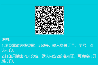 1.请考生扫描下方二维码自行打印准考证。扫描后准确填写身份证号、学号、考试科目后下载打印。